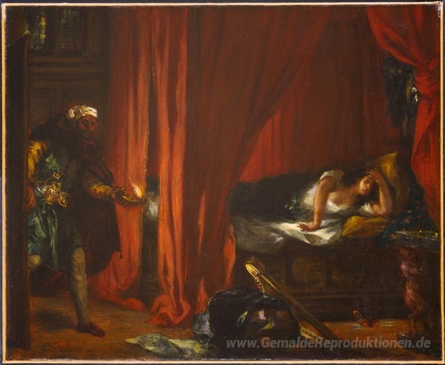 Wir bieten Ihnen eine handgefertigte Reproduktion auf Leinwand des berühmten Kunstwerks 'Othello und Desdemona' von Eugene Delacroix, aus dem Reproduktionsmuseum.