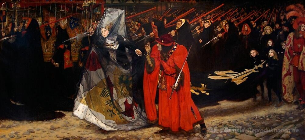 Die künstlerischen Techniken, die Abbey verwendet, reflektieren seine tiefgreifende Kenntnis klassischer Malerei und seine Liebe zur narrativen Kunst. Jedes Pinselstrich und jede Nuance im Richard, Herzog von Gloucester und die Lady Anne schafft eine intime Verbindung zur dargestellten Emotion. Das Gemälde fügt sich harmonisch in verschiedene Einrichtungsstile ein und hebt die Eleganz und den Charakter Ihres Wohnraumes hervor, wodurch es zu einem unverwechselbaren Blickfang wird.