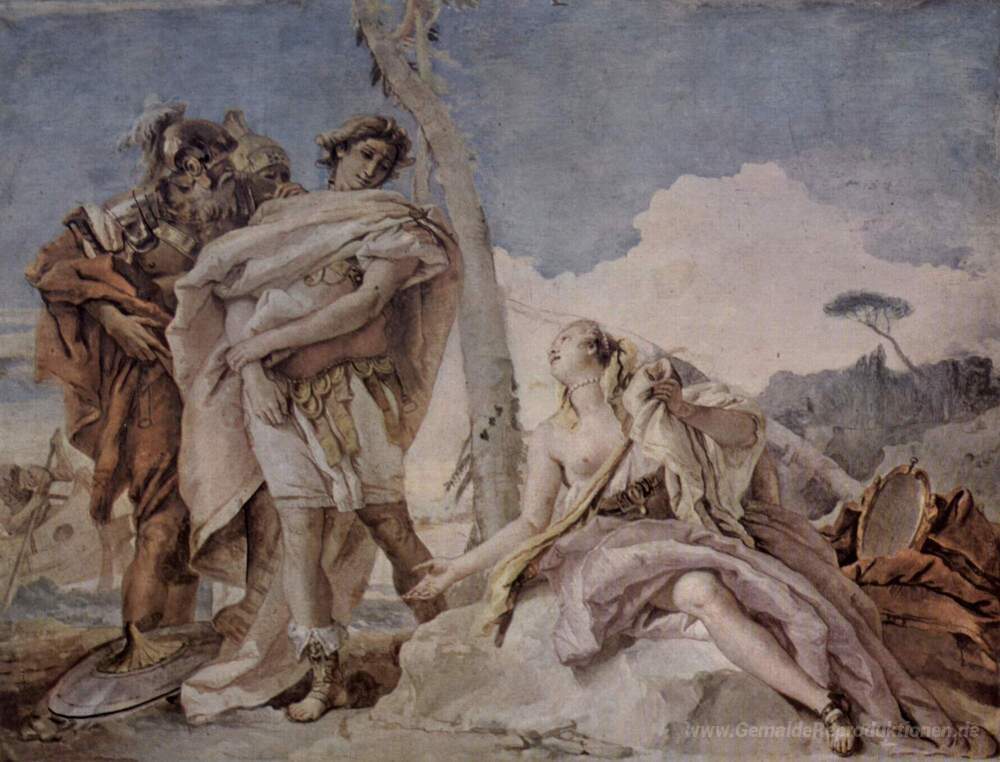 Wir bieten Ihnen eine handgefertigte Reproduktion auf Leinwand des berühmten Kunstwerks 'Rinaldo Verzicht Armida' von Giovanni Battista Tiepolo, aus dem Reproduktionsmuseum.