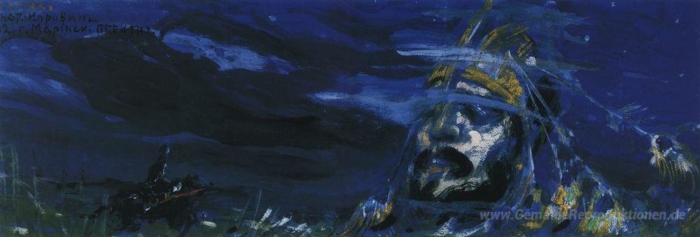 Wir bieten Ihnen eine handgefertigte Reproduktion auf Leinwand des berühmten Kunstwerks 'Ruslan und Kopf' von Konstantin Korovin, aus dem Reproduktionsmuseum.