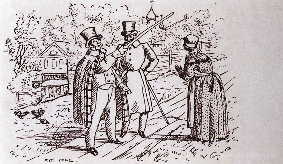 Wir bieten Ihnen eine handgefertigte Reproduktion auf Leinwand des berühmten Kunstwerks 'Sprechen auf der Straße (Herren in der Straße vor dem Haus Patch' von Boris Kustodiev, aus dem Reproduktionsmuseum.