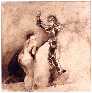 Wir bieten Ihnen eine handgefertigte Reproduktion auf Leinwand des berühmten Kunstwerks 'Studie für Marphisa' von Eugene Delacroix, aus dem Reproduktionsmuseum.