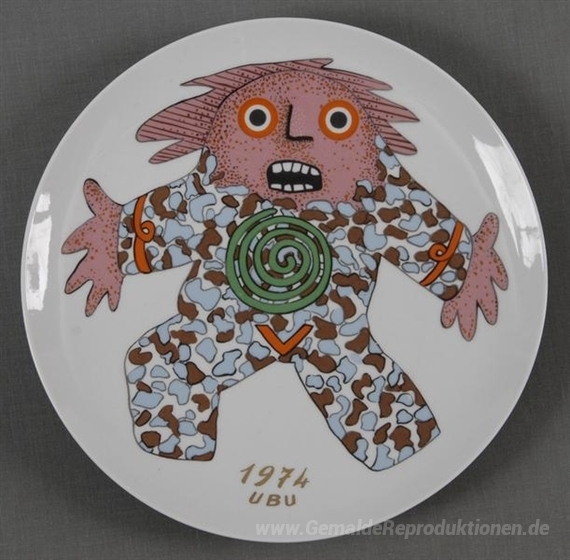 Wir bieten Ihnen eine handgefertigte Reproduktion auf Leinwand des berühmten Kunstwerks 'Ubu' von Enrico Baj, aus dem Reproduktionsmuseum.