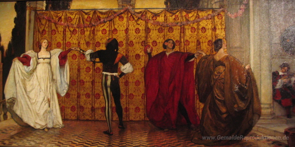 Wir bieten Ihnen eine handgefertigte Reproduktion auf Leinwand des berühmten Kunstwerks 'Une pavane' von Edwin Austin Abbey, aus dem Reproduktionsmuseum.