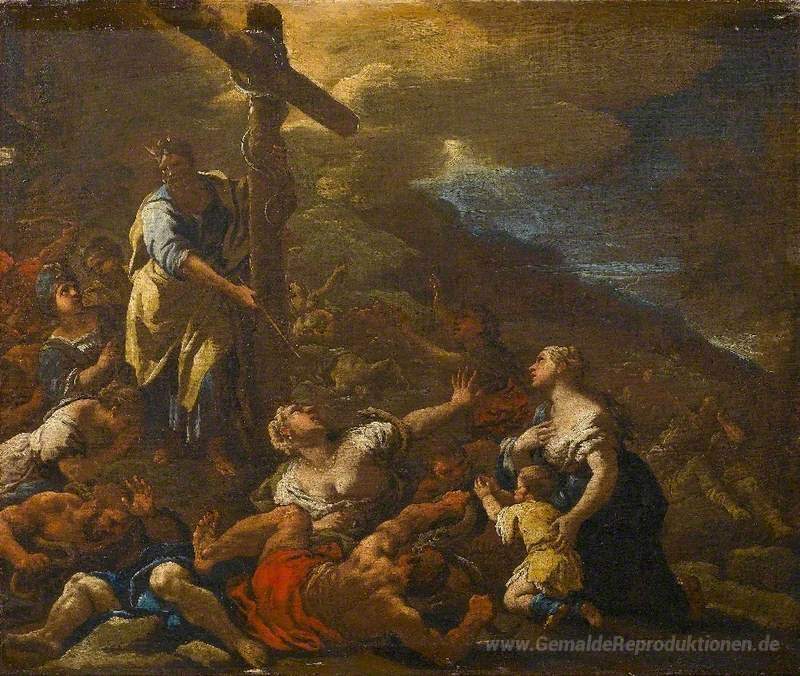 Wir bieten Ihnen eine handgefertigte Reproduktion auf Leinwand des berühmten Kunstwerks 'Moses und die eherne Schlange' von Luca Giordano, aus dem Reproduktionsmuseum.