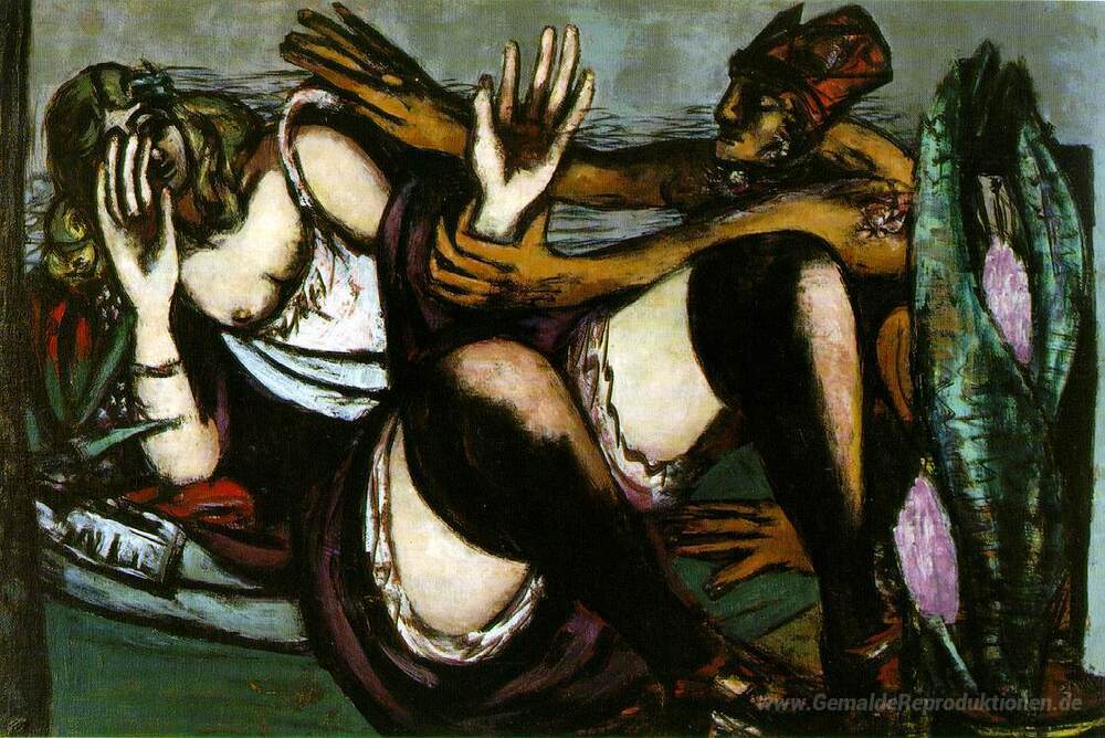 Wir bieten Ihnen eine handgefertigte Reproduktion auf Leinwand des berühmten Kunstwerks 'Nachmittag' von Max Beckmann, aus dem Reproduktionsmuseum.