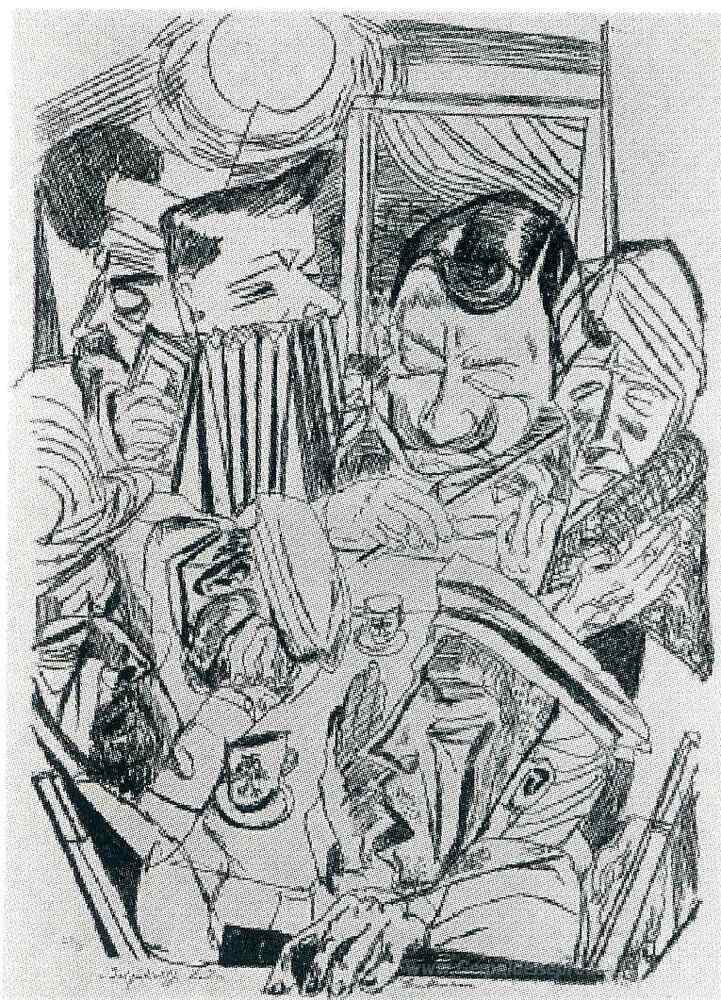 Wir bieten Ihnen eine handgefertigte Reproduktion auf Leinwand des berühmten Kunstwerks 'Patriotisches Lied' von Max Beckmann, aus dem Reproduktionsmuseum.