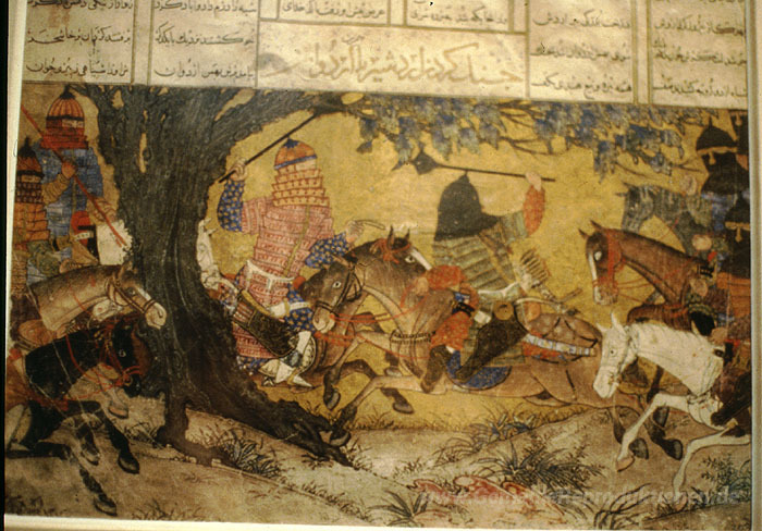 Wir bieten Ihnen eine handgefertigte Reproduktion auf Leinwand des berühmten Kunstwerks 'Ardashir kämpft Bahman' von Ahmad Musa, aus dem Reproduktionsmuseum.