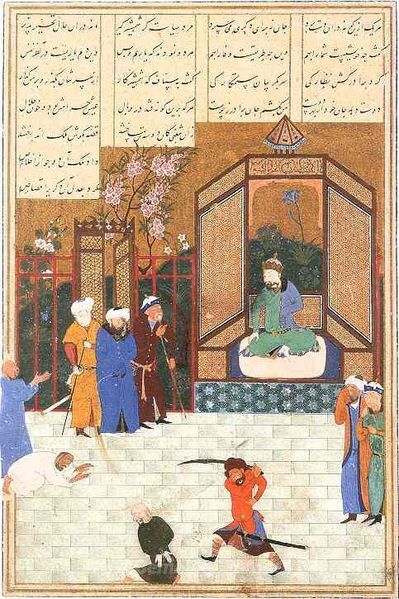 Wir bieten Ihnen eine handgefertigte Reproduktion auf Leinwand des berühmten Kunstwerks 'Enthauptung eines Königs' von Kamal ud-Din Behzad, aus dem Reproduktionsmuseum.