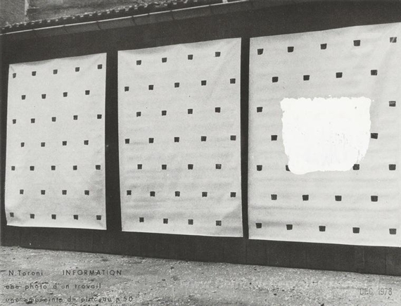 Wir bieten Ihnen eine handgefertigte Reproduktion auf Leinwand des berühmten Kunstwerks 'Informationen' von Niele Toroni, aus dem Reproduktionsmuseum.