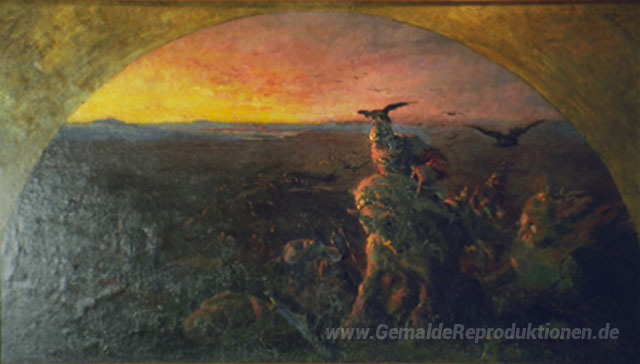 Wir bieten Ihnen eine handgefertigte Reproduktion auf Leinwand des berühmten Kunstwerks 'Abend von Kiew Bogatyrs' von Nicholas Roerich, aus dem Reproduktionsmuseum.
