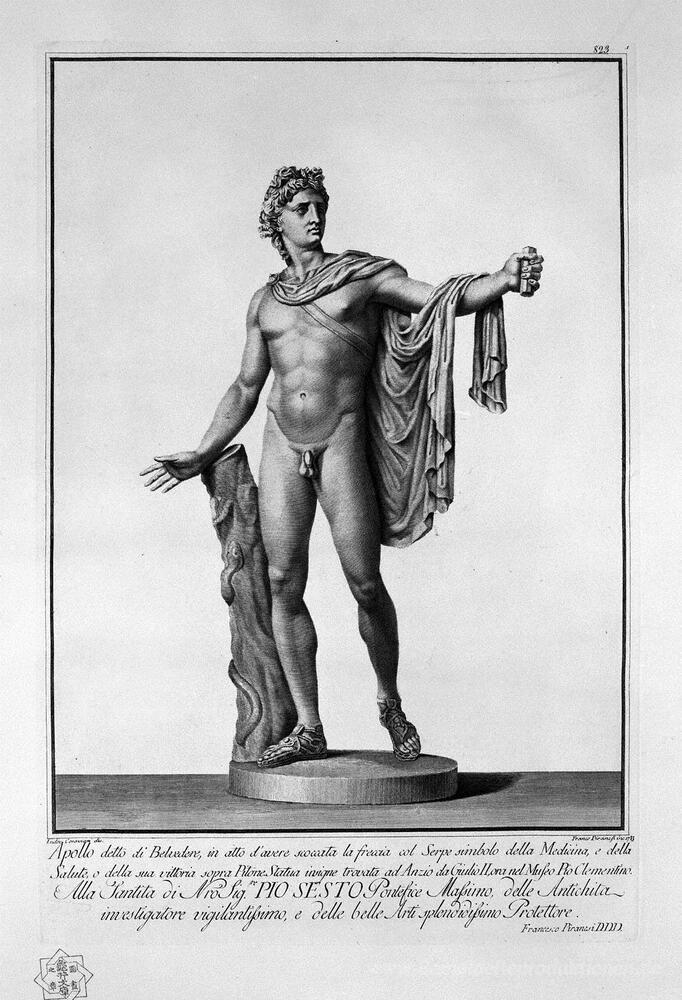 Wir bieten Ihnen eine handgefertigte Reproduktion auf Leinwand des berühmten Kunstwerks 'Apollo Belvedere' von Giovanni Battista Piranesi, aus dem Reproduktionsmuseum.