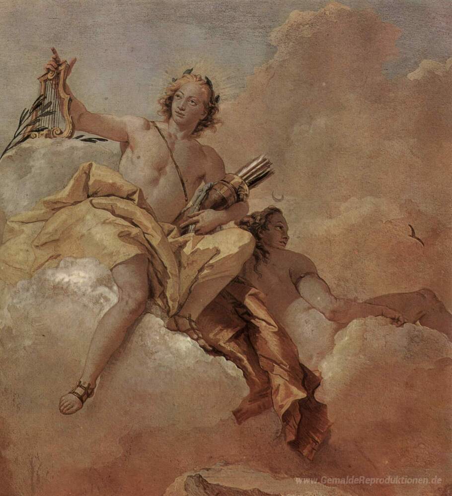 Wir bieten Ihnen eine handgefertigte Reproduktion auf Leinwand des berühmten Kunstwerks 'Apollo und Diana' von Giovanni Domenico Tiepolo, aus dem Reproduktionsmuseum.