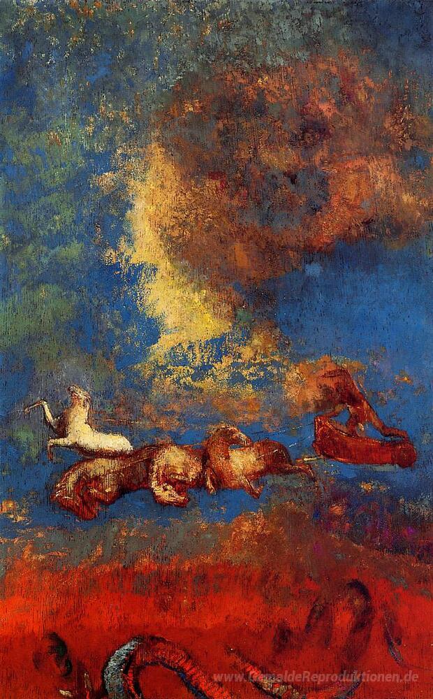 Wir bieten Ihnen eine handgefertigte Reproduktion auf Leinwand des berühmten Kunstwerks 'Apollos Chariot' von Odilon Redon, aus dem Reproduktionsmuseum.