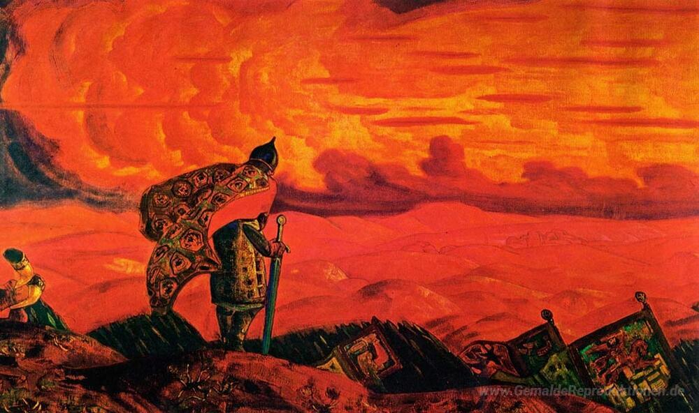 Wir bieten Ihnen eine handgefertigte Reproduktion auf Leinwand des berühmten Kunstwerks 'Arrows of sky - Speere Land' von Nicholas Roerich, aus dem Reproduktionsmuseum.