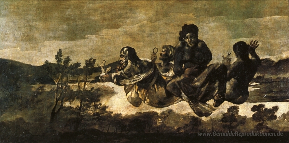 Wir bieten Ihnen eine handgefertigte Reproduktion auf Leinwand des berühmten Kunstwerks 'Atropos (The Fates)' von Francisco Goya, aus dem Reproduktionsmuseum.
