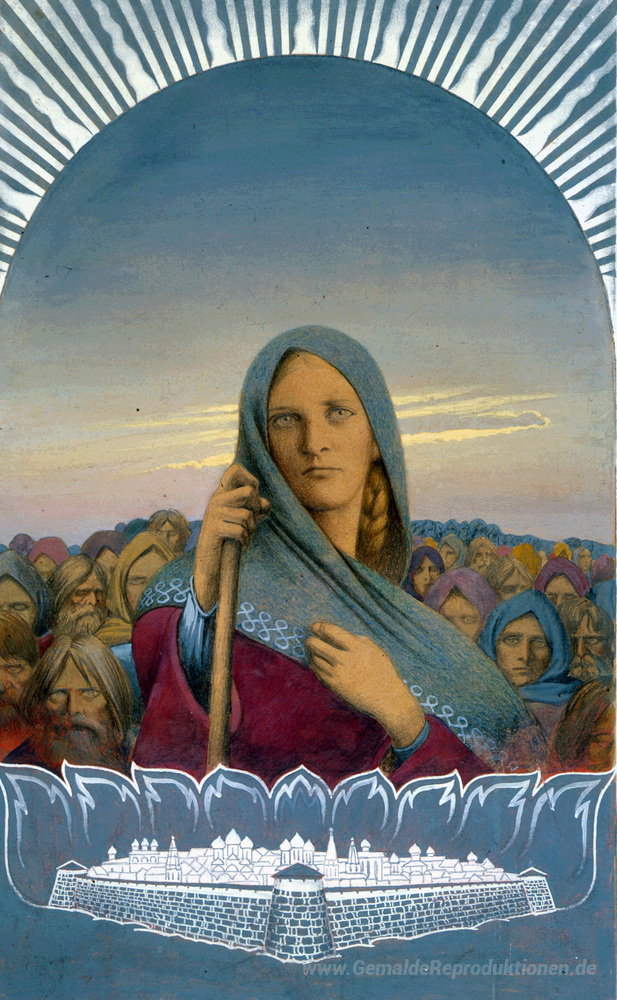 Wir bieten Ihnen eine handgefertigte Reproduktion auf Leinwand des berühmten Kunstwerks 'Awdotja-Ryazanochka' von Konstantin Vasilyev, aus dem Reproduktionsmuseum.