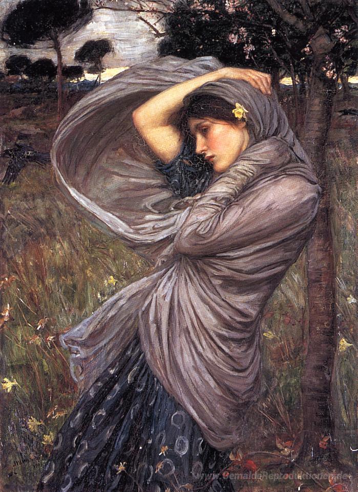 Wir bieten Ihnen eine handgefertigte Reproduktion auf Leinwand des berühmten Kunstwerks 'Boreas' von John William Waterhouse, aus dem Reproduktionsmuseum.