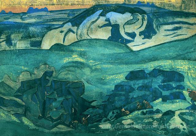 Wir bieten Ihnen eine handgefertigte Reproduktion auf Leinwand des berühmten Kunstwerks 'Chud hat unter der Erde verschwunden' von Nicholas Roerich, aus dem Reproduktionsmuseum.