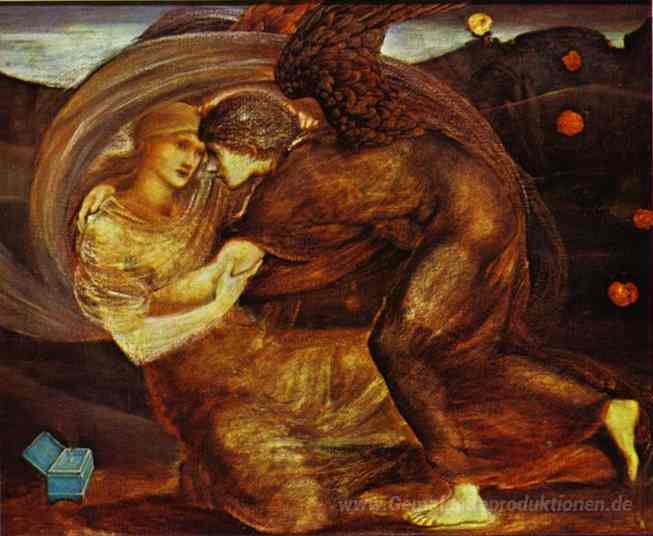 Wir bieten Ihnen eine handgefertigte Reproduktion auf Leinwand des berühmten Kunstwerks 'Cupid Delivering Psyche' von Edward Burne-Jones, aus dem Reproduktionsmuseum.