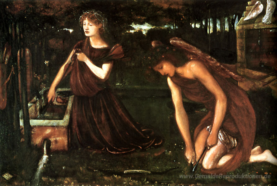 Wir bieten Ihnen eine handgefertigte Reproduktion auf Leinwand des berühmten Kunstwerks 'Cupids Forge' von Edward Burne-Jones, aus dem Reproduktionsmuseum.