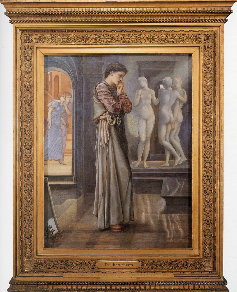 Wir bieten Ihnen eine handgefertigte Reproduktion auf Leinwand des berühmten Kunstwerks 'Das Herz begehrt' von Edward Burne-Jones, aus dem Reproduktionsmuseum.
