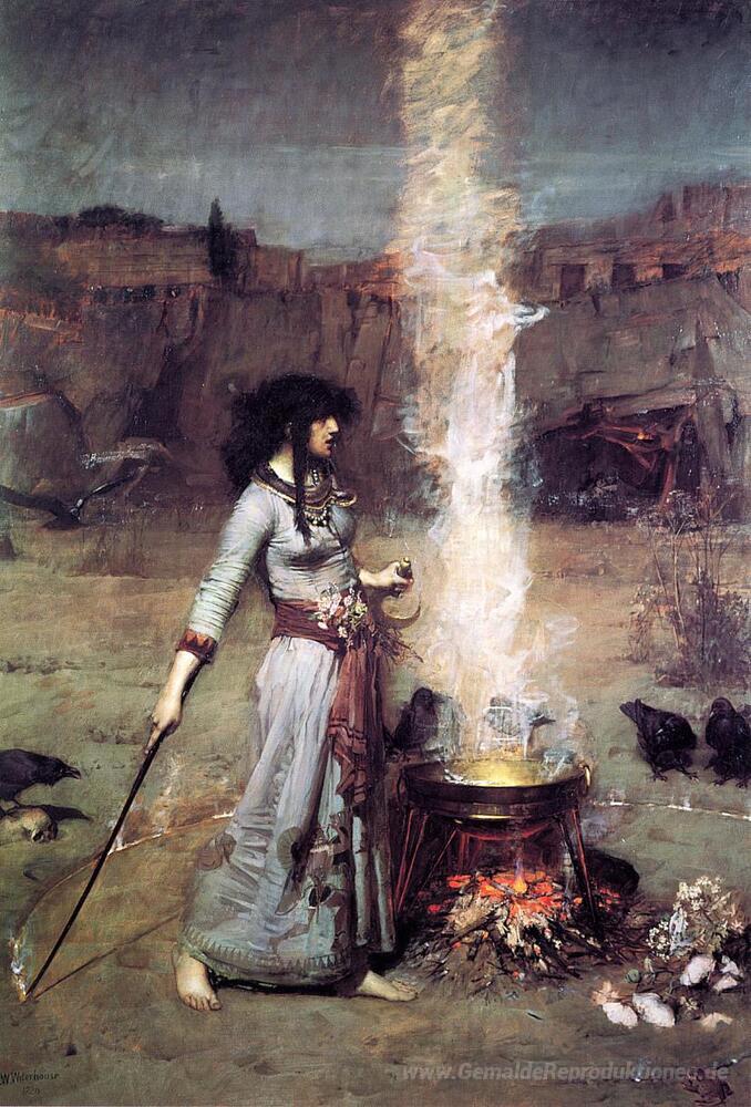 Willkommen in der Welt der Ölgemälde, wo Kunst und Emotion ineinanderfließen, um außergewöhnliche Atmosphären zu schaffen. In unserer Kollektion präsentieren wir Ihnen Meisterwerke wie das Magic Circle von John William Waterhouse, einem der prominentesten Künstler der Präraffaeliten. Waterhouse ist bekannt für seine Fähigkeit, mythologische und romantische Themen durch einen beeindruckenden Einsatz von Farben und Licht darzustellen, der das Wesen seiner Modelle lebendig werden lässt.