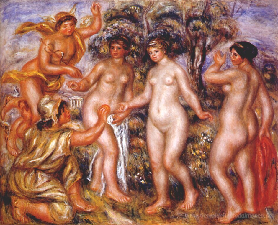 Wir bieten Ihnen eine handgefertigte Reproduktion auf Leinwand des berühmten Kunstwerks 'Das Urteil des Paris' von Pierre-Auguste Renoir, aus dem Reproduktionsmuseum.