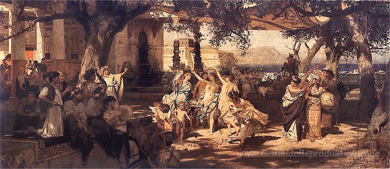 Wir bieten Ihnen eine handgefertigte Reproduktion auf Leinwand des berühmten Kunstwerks 'Das Urteil des Paris' von Henryk Siemiradzki, aus dem Reproduktionsmuseum.