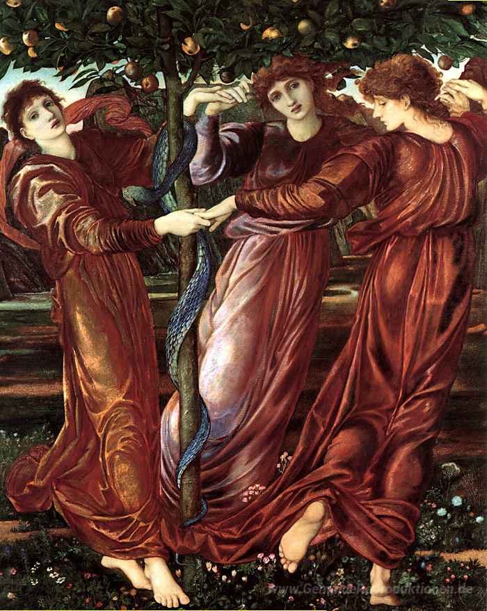 Wir bieten Ihnen eine handgefertigte Reproduktion auf Leinwand des berühmten Kunstwerks 'Der Garten des Heserides' von Edward Burne-Jones, aus dem Reproduktionsmuseum.