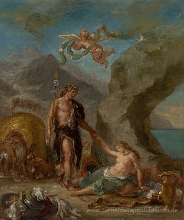 Wir bieten Ihnen eine handgefertigte Reproduktion auf Leinwand des berühmten Kunstwerks 'Der Herbst Bacchus und Ariadne' von Eugene Delacroix, aus dem Reproduktionsmuseum.
