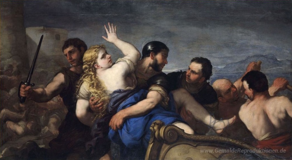 Wir bieten Ihnen eine handgefertigte Reproduktion auf Leinwand des berühmten Kunstwerks 'Der Raub von Helen' von Luca Giordano, aus dem Reproduktionsmuseum.