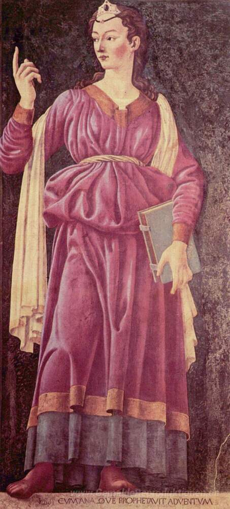Wir bieten Ihnen eine handgefertigte Reproduktion auf Leinwand des berühmten Kunstwerks 'Die Cuman Sibyl' von Andrea del Castagno, aus dem Reproduktionsmuseum.