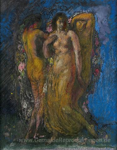 Wir bieten Ihnen eine handgefertigte Reproduktion auf Leinwand des berühmten Kunstwerks 'Die drei Grazien' von Michel Simonidy, aus dem Reproduktionsmuseum.