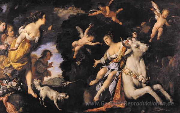 Wir bieten Ihnen eine handgefertigte Reproduktion auf Leinwand des berühmten Kunstwerks 'Die Entführung der Europa' von Bernardo Strozzi, aus dem Reproduktionsmuseum.