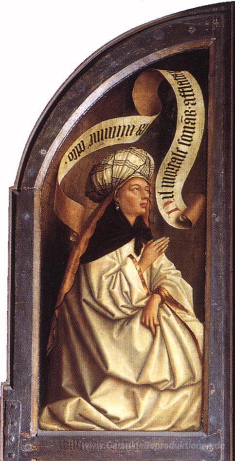 Wir bieten Ihnen eine handgefertigte Reproduktion auf Leinwand des berühmten Kunstwerks 'Die Erythräische Sibylle' von Jan van Eyck, aus dem Reproduktionsmuseum.