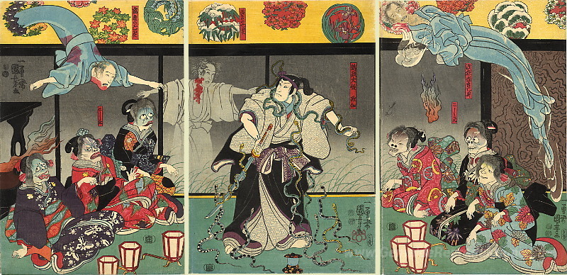 Wir bieten Ihnen eine handgefertigte Reproduktion auf Leinwand des berühmten Kunstwerks 'Die Ghosts' von Utagawa Kuniyoshi, aus dem Reproduktionsmuseum.