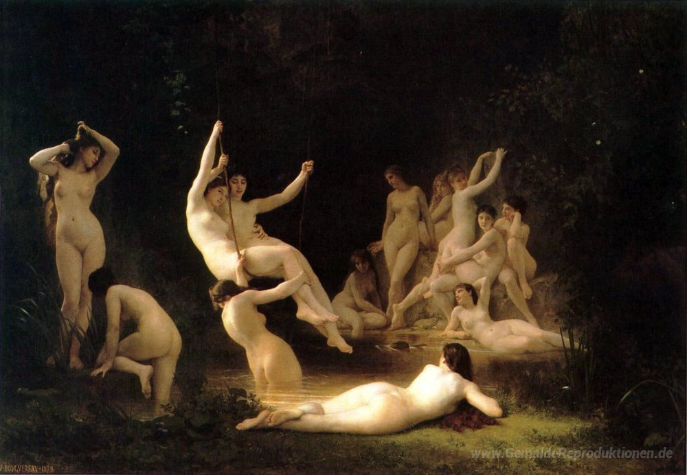 Wir bieten Ihnen eine handgefertigte Reproduktion auf Leinwand des berühmten Kunstwerks 'Die Nymphäum' von William-Adolphe Bouguereau, aus dem Reproduktionsmuseum.
