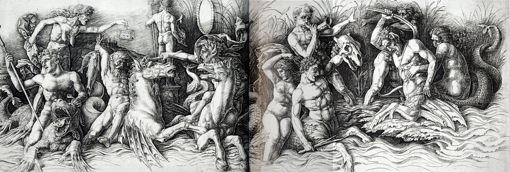 Wir bieten Ihnen eine handgefertigte Reproduktion auf Leinwand des berühmten Kunstwerks 'Die Schlacht von Sea Gods' von Andrea Mantegna, aus dem Reproduktionsmuseum.
