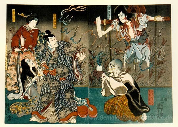 Wir bieten Ihnen eine handgefertigte Reproduktion auf Leinwand des berühmten Kunstwerks 'Die Seelen von Togo und seine Frau' von Utagawa Kuniyoshi, aus dem Reproduktionsmuseum.