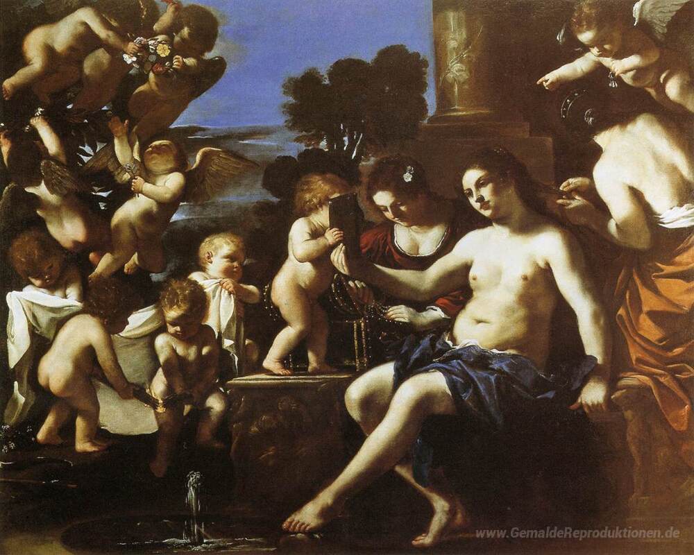 Wir bieten Ihnen eine handgefertigte Reproduktion auf Leinwand des berühmten Kunstwerks 'Die Toilette der Venus' von Guercino, aus dem Reproduktionsmuseum.