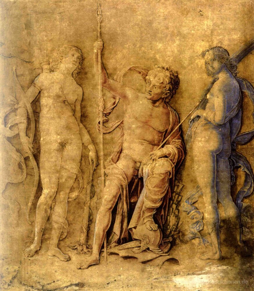 Wir bieten Ihnen eine handgefertigte Reproduktion auf Leinwand des berühmten Kunstwerks 'Drei Gottheiten' von Andrea Mantegna, aus dem Reproduktionsmuseum.