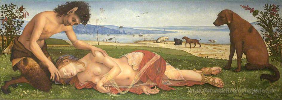 Wir bieten Ihnen eine handgefertigte Reproduktion auf Leinwand des berühmten Kunstwerks 'Ein Satyr Trauer über eine Nymphe' von Piero di Cosimo, aus dem Reproduktionsmuseum.