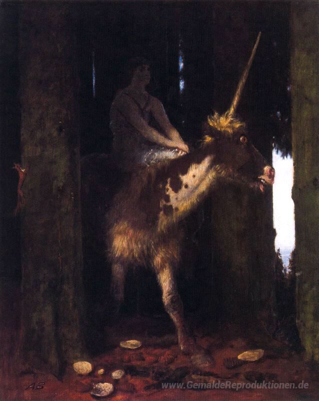 Wir bieten Ihnen eine handgefertigte Reproduktion auf Leinwand des berühmten Kunstwerks 'Einhorn' von Arnold Böcklin, aus dem Reproduktionsmuseum.