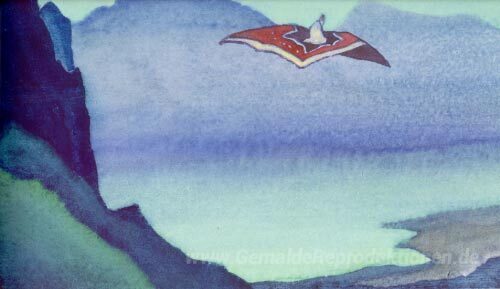 Wir bieten Ihnen eine handgefertigte Reproduktion auf Leinwand des berühmten Kunstwerks 'Flying Carpet' von Nicholas Roerich, aus dem Reproduktionsmuseum.