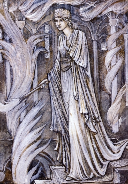 Wir bieten Ihnen eine handgefertigte Reproduktion auf Leinwand des berühmten Kunstwerks 'Gudrun Brand zu Atli s Palace' von Edward Burne-Jones, aus dem Reproduktionsmuseum.