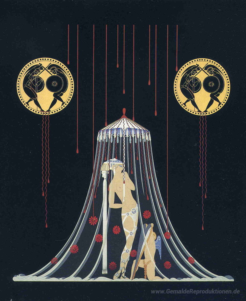 Wir bieten Ihnen eine handgefertigte Reproduktion auf Leinwand des berühmten Kunstwerks 'Helen of Troy' von Erte, aus dem Reproduktionsmuseum.