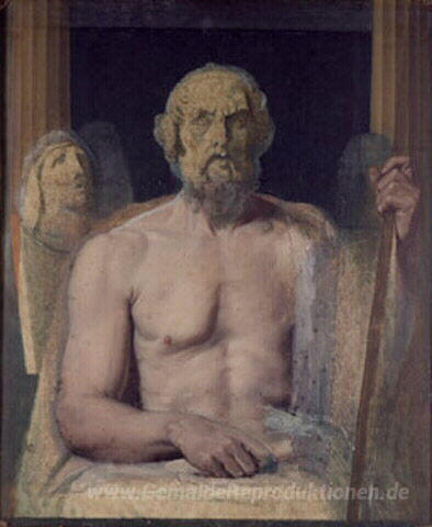 Wir bieten Ihnen eine handgefertigte Reproduktion auf Leinwand des berühmten Kunstwerks 'Homer und Orpheus' von Jean Auguste Dominique Ingres, aus dem Reproduktionsmuseum.