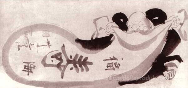Wir bieten Ihnen eine handgefertigte Reproduktion auf Leinwand des berühmten Kunstwerks 'Hotei mit seinem Schatz-Tasche' von Hakuin Ekaku, aus dem Reproduktionsmuseum.