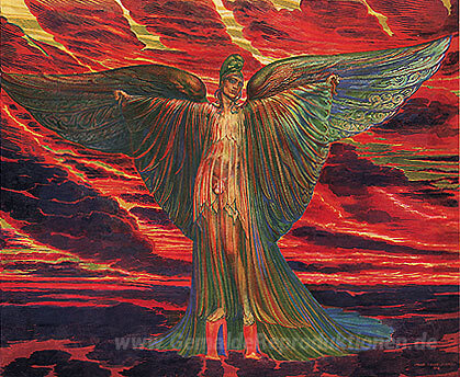 Wir bieten Ihnen eine handgefertigte Reproduktion auf Leinwand des berühmten Kunstwerks 'ICARUS ON COTHURNI (aus dem Lohengrin Cycle)' von Ernst Fuchs, aus dem Reproduktionsmuseum.